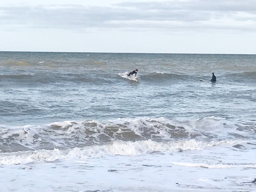We walked to East Runton Fish & Chip shop where we bought our tea. We took it down to the beach. The tide was still coming in but we were able to sit on the breakwater and watch a number of surfers 🏄♂️ while we ate the Fish 🐟 & Chips 🍟. Sue took some wine 🍷 and I took a beer 🍺 .It was a great way to round off the four days.