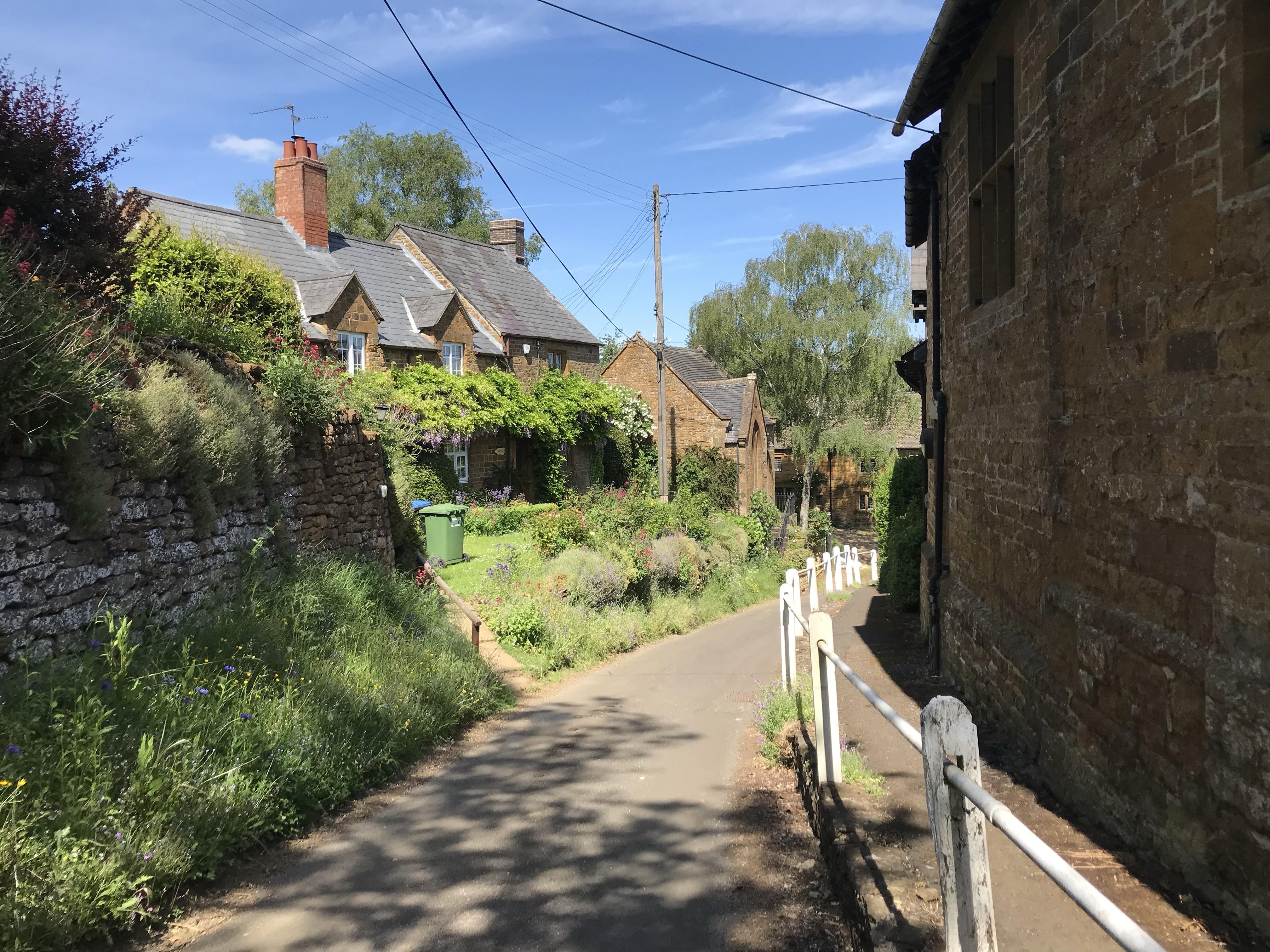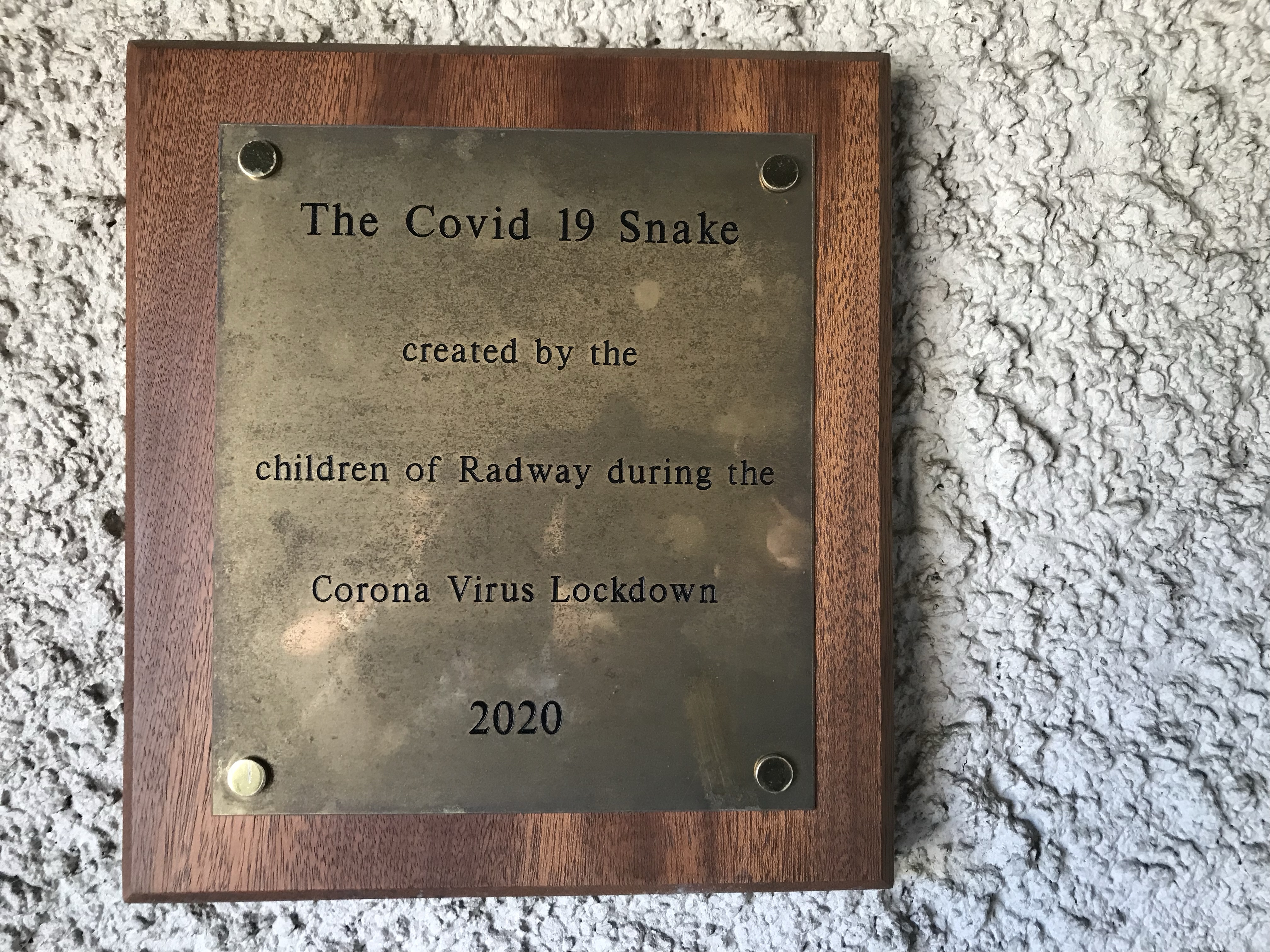 The footpath lead us to the village of Radway, which is where the battle of Edgehill was fought. As we wandered through the village we came to a bus shelter with a board full of photos of village scenes throughout the year. There was also a plaque and a Covid 19 snake made by the school children from painted pebbles.