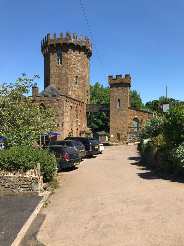We eventually reached a level path and we followed this back towards the Caste Inn which was still some hundred feet above us. The path upto the Inn was a climb and we stopped to take a photo before heading back down a path towards the bottom of Jacobs ladder. The castle was a folly built about 100 years after the battle. It has now been converted to a Pub.