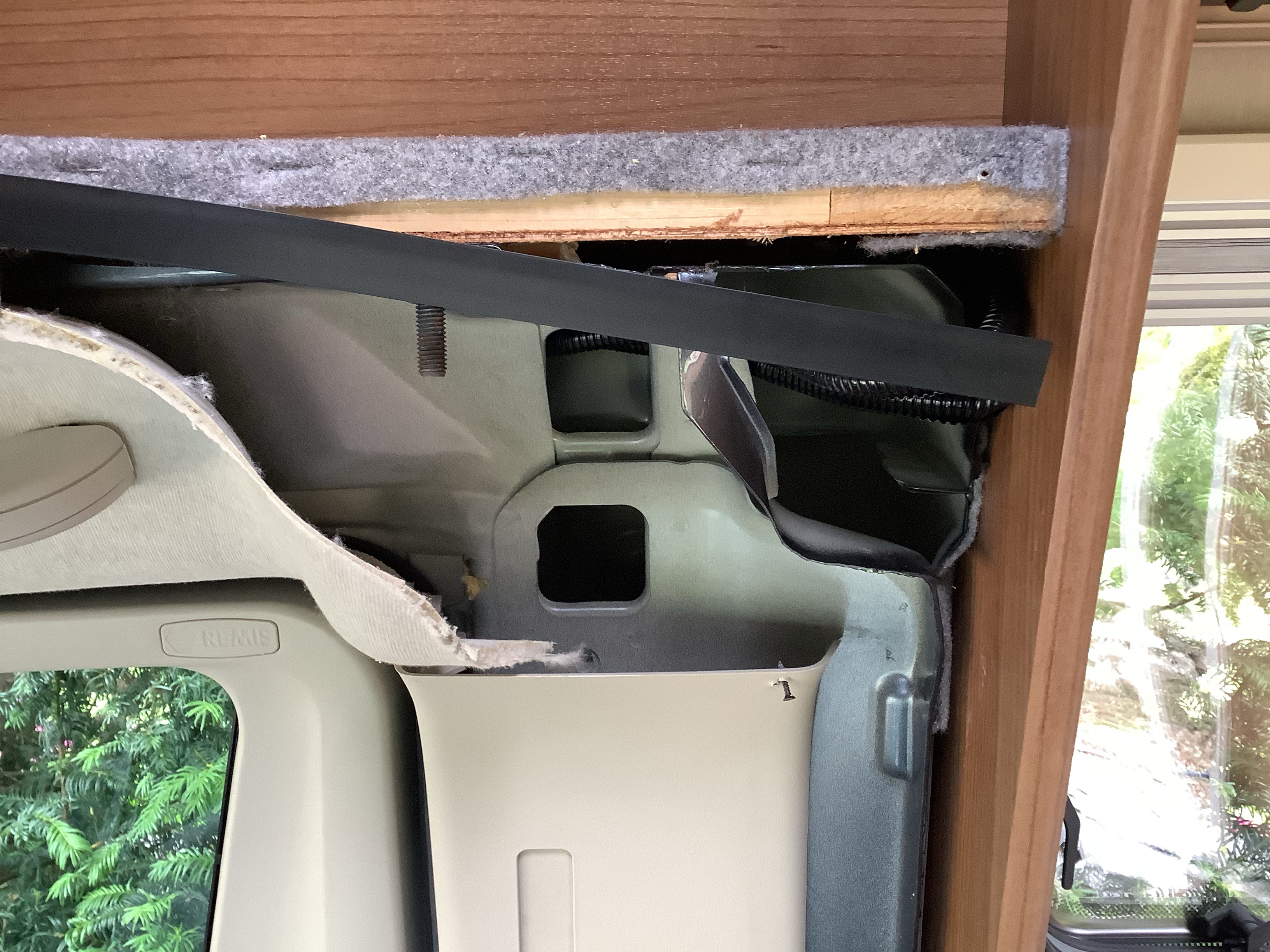 Once that was done I could route the cable to the vehicle battery. Once all connected the cab was returned to it’s original condition. So now I have a solar controller that will charge the leisure batteries and when they are 70% full it will add in the vehicle battery and charge them until they are all are fully charged.