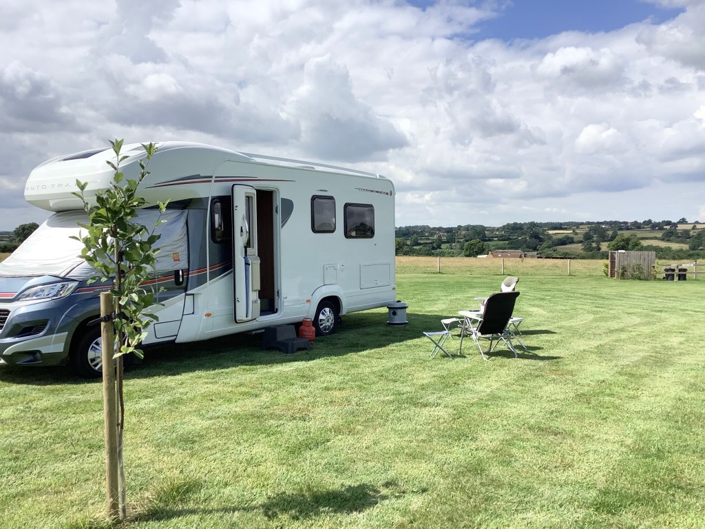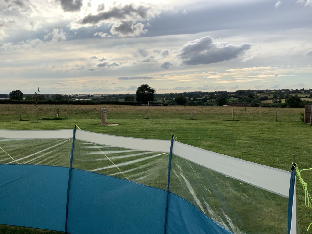 I found the flattest bit of the field and we did not need any levelling ramps. The site is on top of a hill so the views are of open farmland and distant villages. We are within a couple of miles of Melton Mowbray, Leicestershire, famous for it’s pork pies 🥧.