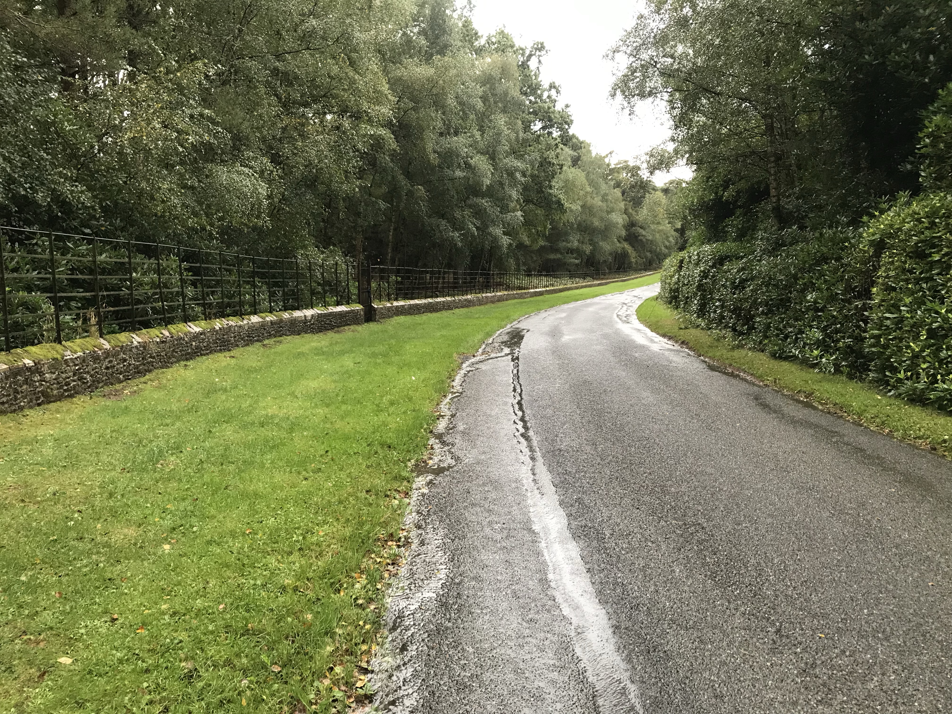 After a night of Gales,rain and wood pigeons stomping on the roof morning eventually arrived. It is now 08.29 and it is so dark under the trees that the solar panels are still not producing any electric. Thank goodness for the electric hookup.