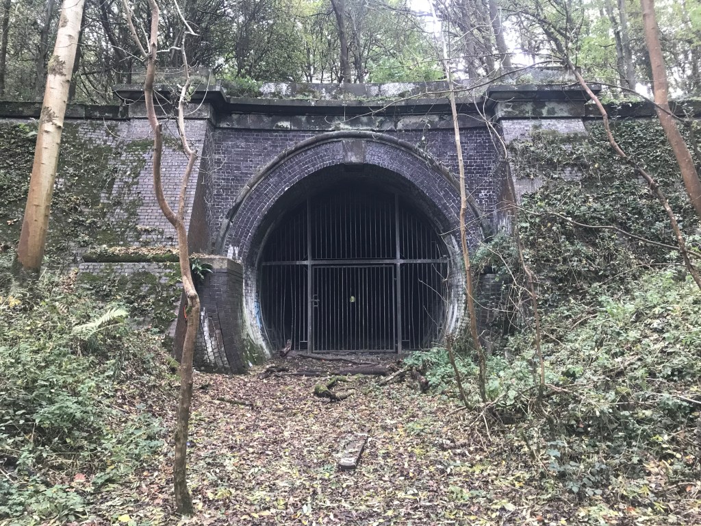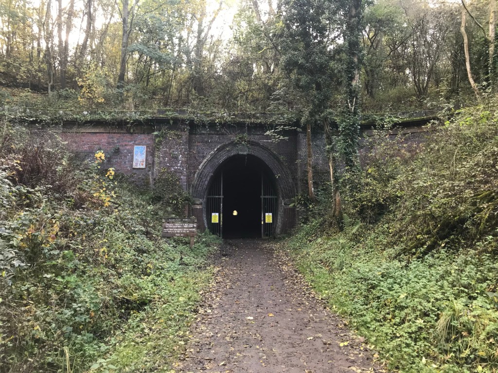 There is a large bank between the tunnels and the up line tunnel is locked with only the down line tunnel open for access to walkers and cyclists.