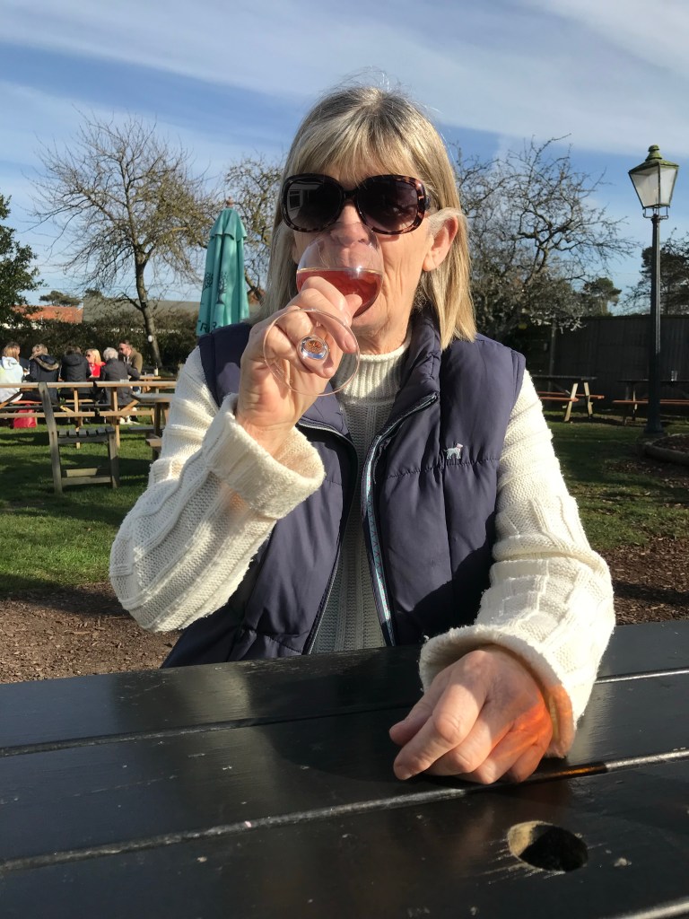 I had a great idea that because it was so warm and Sunny we should stop at The Jolly Sailors and have drink in the garden. It was a great idea and quite a few others had the same thought. Later in the week we are coming back for Brancaster Mussels but for now a pint and a wine has done the trick.