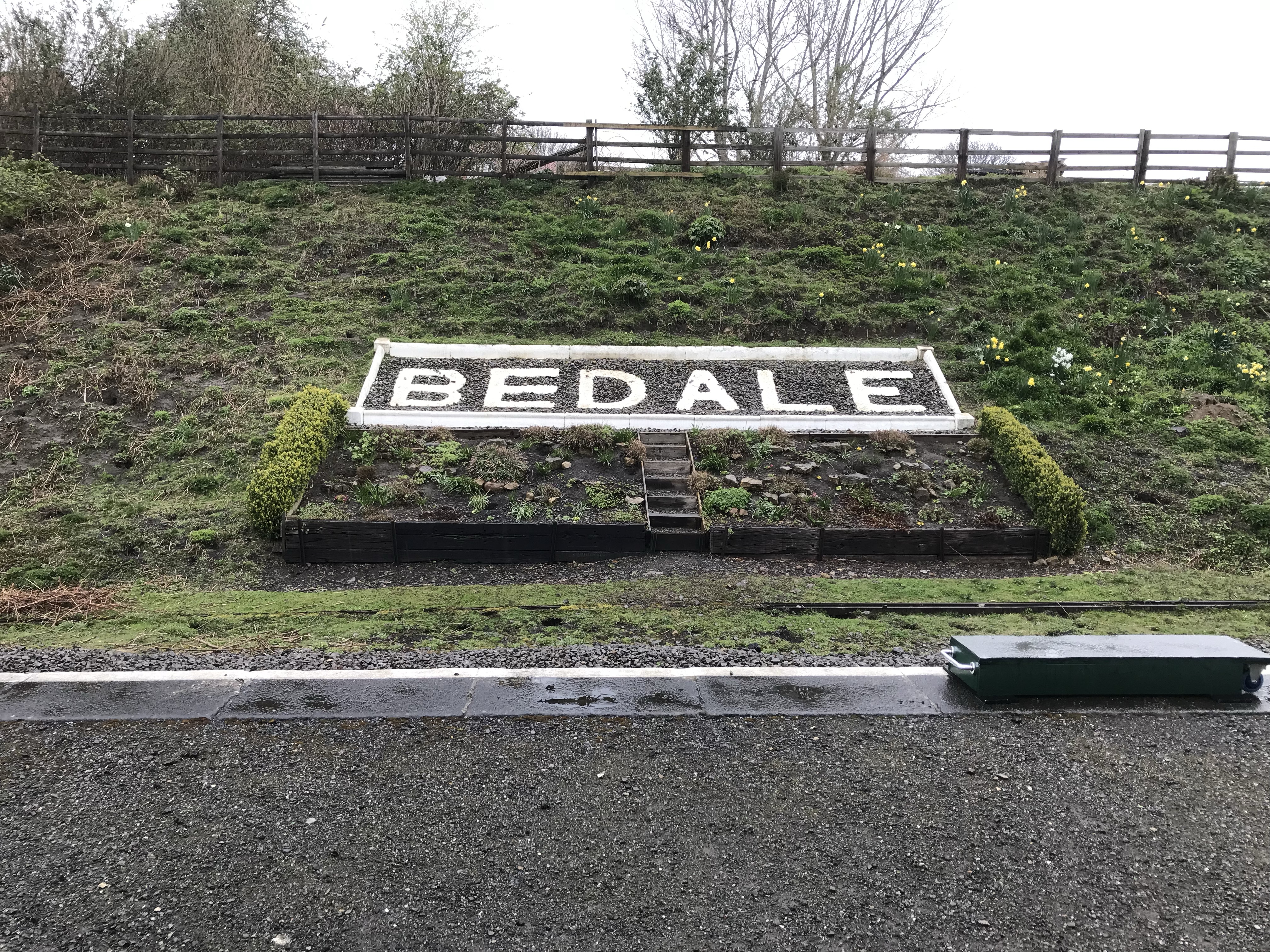 The rain started again as we made our way to the museum but it was closed, so we walked to the railway station which is on the Wensleydale heritage railway. The line reopened in 2003 and the station opened to trains in 2005. The line is still being developed and opens again at Easter for the start of their season.