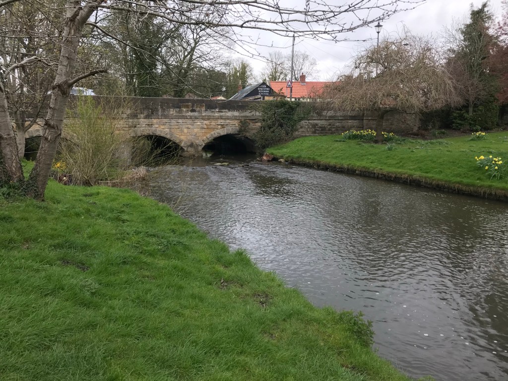 We walked into Bedale and headed for the Bedale Beck which has a footpath alongside. We followed the footpath and it took us to a weir by Bedale Harbour. The harbour was really a canal basin but the money ran out before the canal was completed. You can see the mooring rings in the wall. The weir would have been a lock but it was never finished.