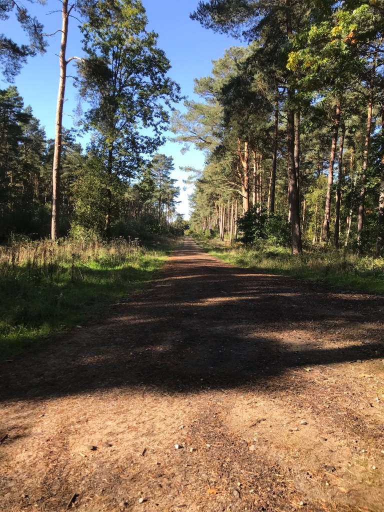 We continued after lunch by heading back the way we came with a couple of small diversions in the woods. We met a polish man who was collecting mushrooms. He must have known what he was doing but to be honest we did not recognise any in his bucket. The rest of the walk home was uneventful apart from when we walked by the golfcourse and here Sue found a Golf ball at the side of the road. She kept it until we walked past a practice green where she threw the ball down. We reached the campsite and our walk totaled just over 6 miles