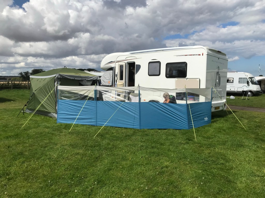 Once we had signed in we were shown a pitch which seemed fairly level although we still used the ramps. We set up the Quest and a windbreak more as protection as the wind was coming in off the sea.