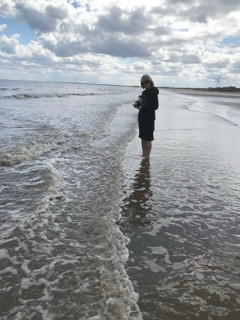 We couldn’t stay in the motorhome all day so we went for a walk along the beach, we continued past Fraisthorpe cafe for about a mile and then we turned around to walk back along the sea line. There were plenty of walkers and dogs, a couple of horse riders and a man with a metal detector.