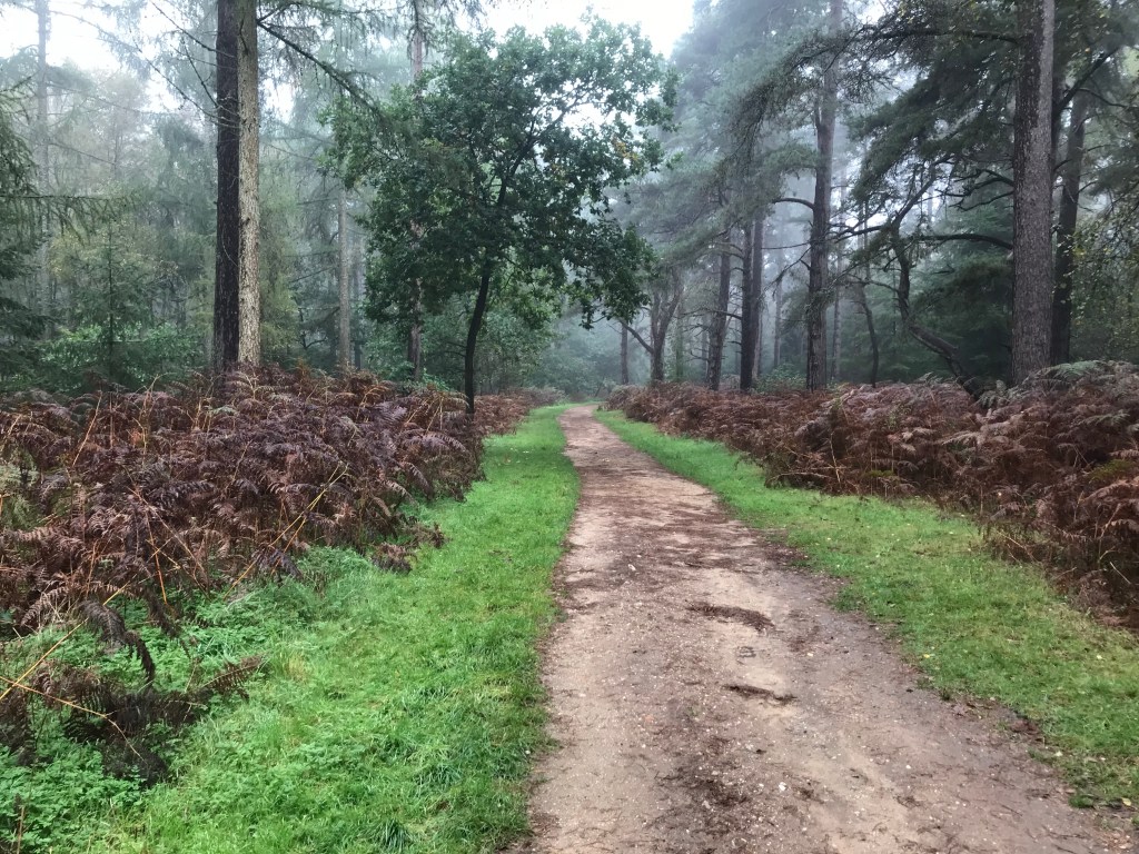 Today is dry and overcast so once the normal jobs were done we started our walk. We headed for one of the the main cycle/ footpaths which took us towards a viewing point. However it was still very Misty so there was no real view.