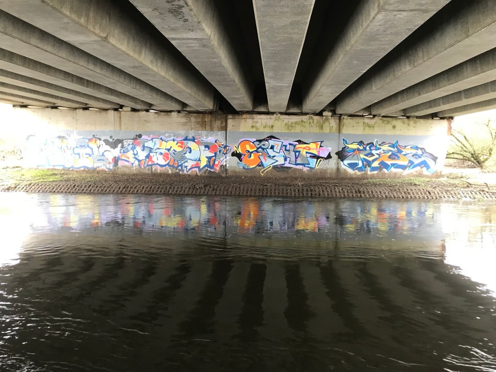 At the bridge which carries the A42 over the river Tame we saw that some of the artwork had been updated. Particularly on the opposite bank.