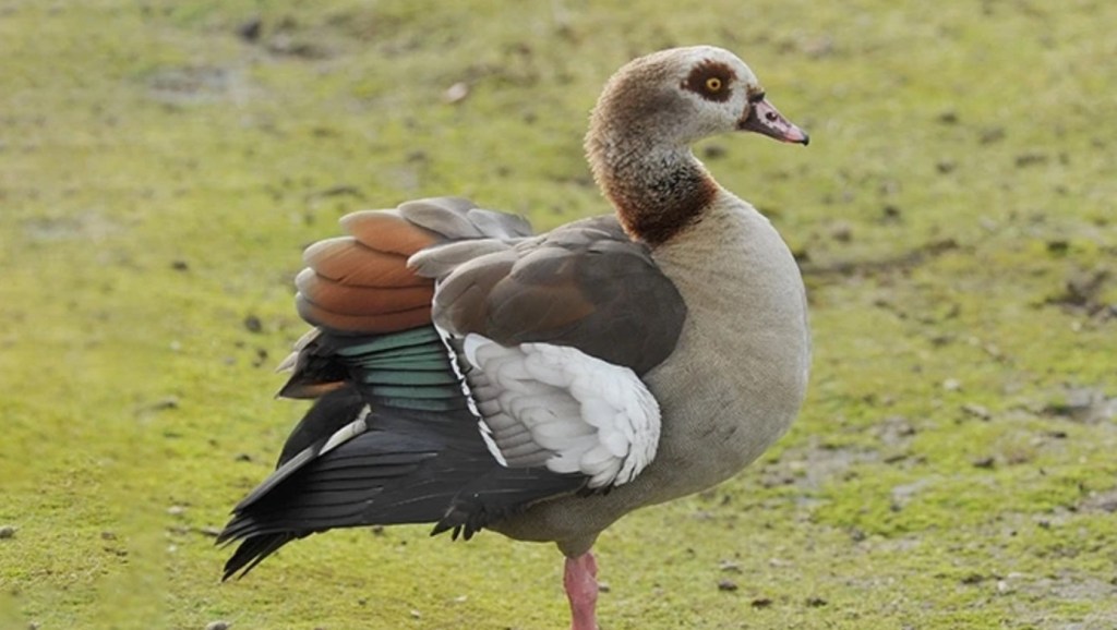 Eventually we found a proper footpath and we followed it to the main car park. We were headed for Kingsbury which was the other side of some lakes. At the edge of the main lake we saw a couple of unfamiliar type geese so we got out our RSPB book to find out what they were. They were Egyptian Geese.