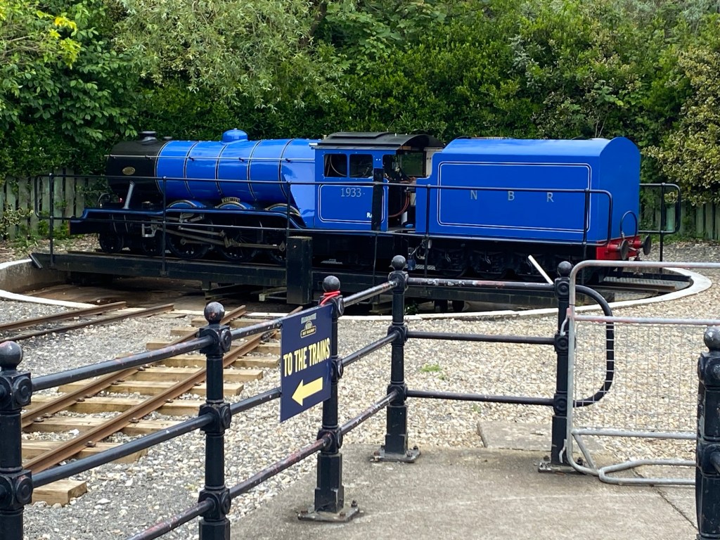 The day started with heavy rain but by 9am it had stopped. We did all the normal jobs and then set off on a walk to the Japanese gardens. A short walk from there is the Scarborough North Shore Railway. We got two return tickets to Scalby Mill where there is a pub.