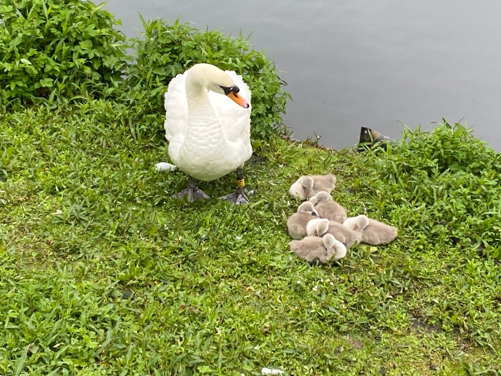 The bonus was that everything had young. Swans with signets resting by a bridge was the first group we came across and then we met some Canadian geese, the goslings just wanted to check us out but mum and dad were not so keen.