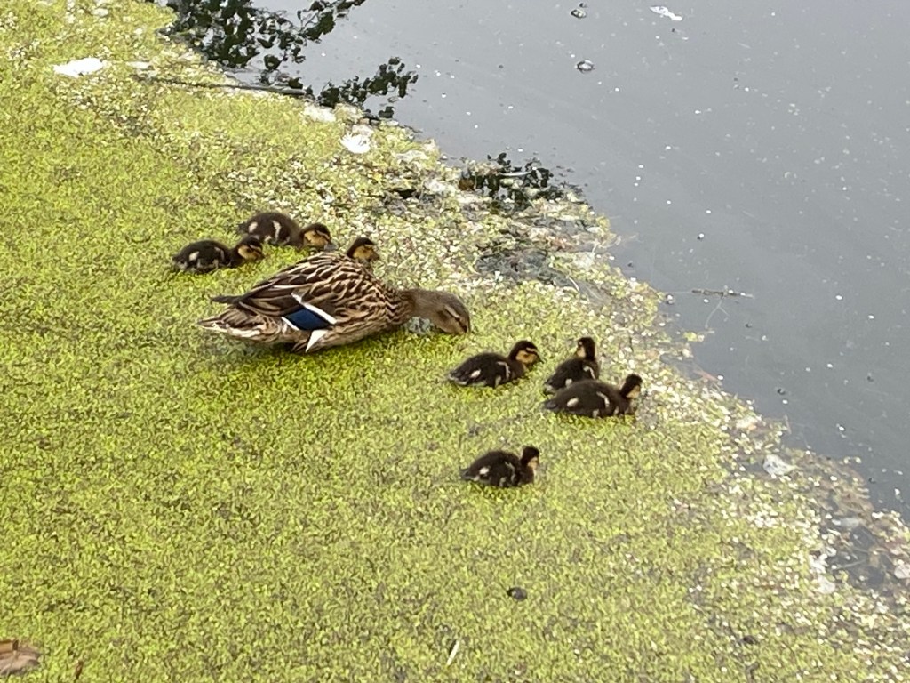 We came across a fisherman who had just caught a very large bream and he was in the process of landing it. A little further on we came across another clutch of goslings, as well as mallard, coots and moorhens all with chicks of varying ages.