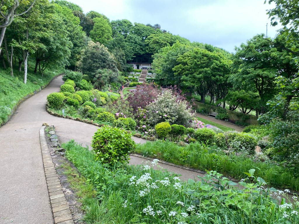 We climbed upto the Grand Hotel and found the esplanades which runs along the cliff tops before heading inland towards Oliver’s Mount. The climb up Hells Drop seems to get easier.