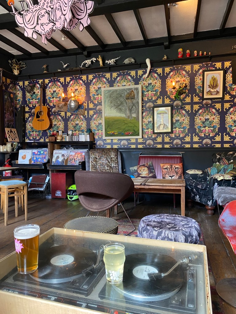 We headed back into the town centre and called in at the Feather Star pub, it is amazing with all sorts of decorations and knick knacks on the walls and shelves. The area that we sat in had various chairs ranging from bus seats, to 1960s deco chairs. The tables were again a mixture, ours was to twin deck record player, and there was a drum, a school desk. In The gents toilets the walls above shoulder height were covered in beer mats.