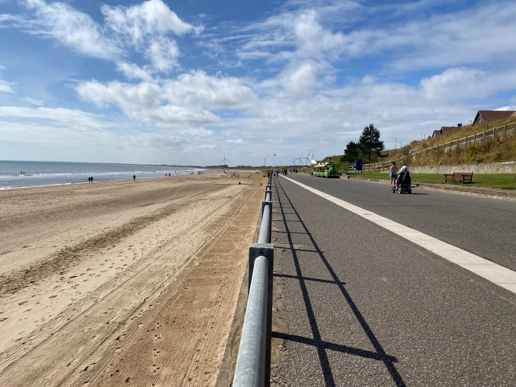 We walked into Bridlington along the prom to the first shops and then came home. Sue did us a pack up and we went onto the beach, found a place in the dunes out of the wind and spent the afternoon reading.