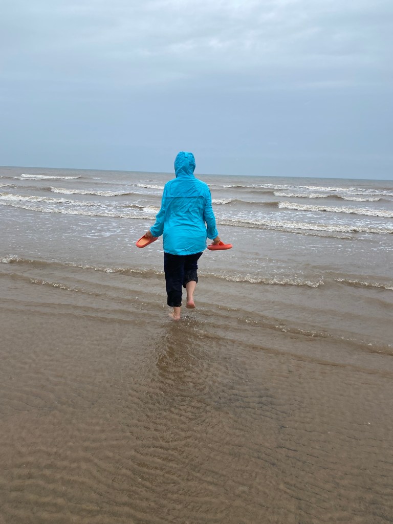 It was fine this morning and we went out onto the beach for a walk. It started to rain but we carried on.