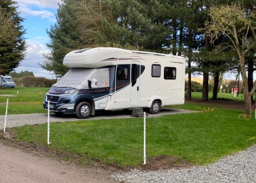 We arrived with a few minutes to spare before we were shown to a pitch. Apparently they are busy so we have been allocated what must be the smallest pitch on the site. It is about 9m long but only 3m wide and our van is 2.5 m wide. Yet the pitch behind us is 8m x8m and there is a 6m motorhome given that one..