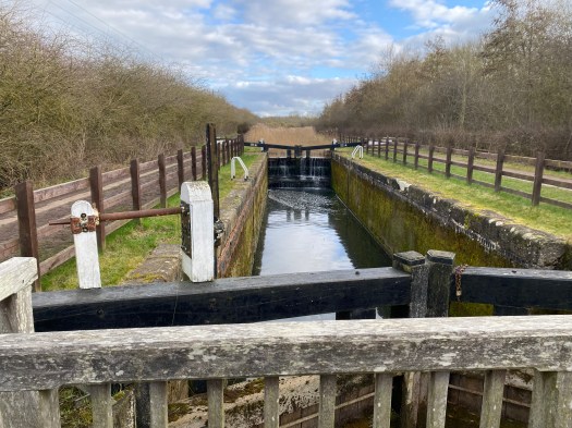 At the lock we crossed the canal and followed the path back to the railway line and headed home.