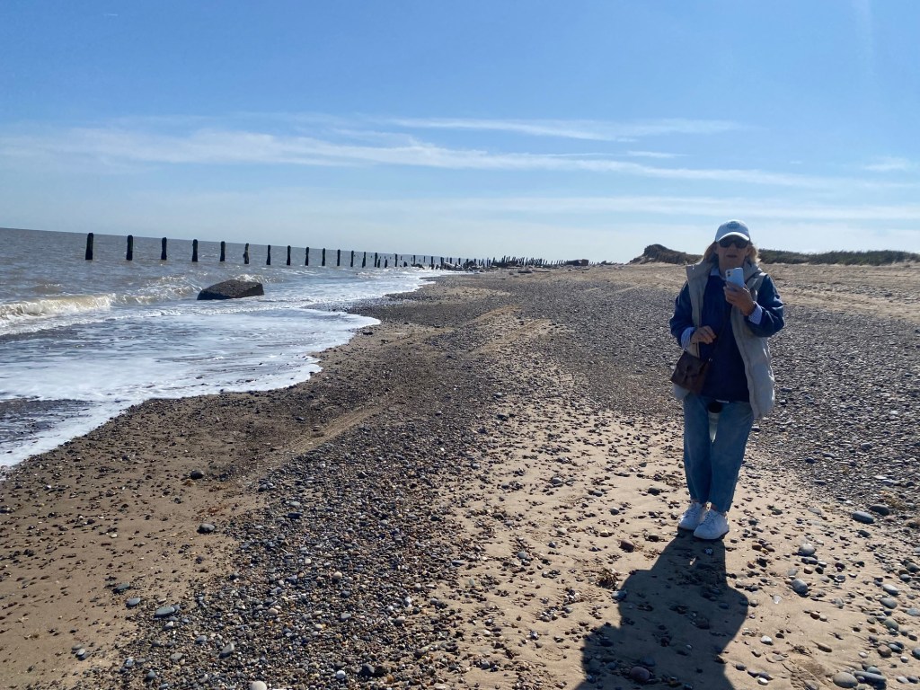We walked to the coast and passed the pub and out onto Spurn. The idea was to just go to the RSPB site and turn around. We carried on and walked for 40 minutes halfway along Spurn before turning around.