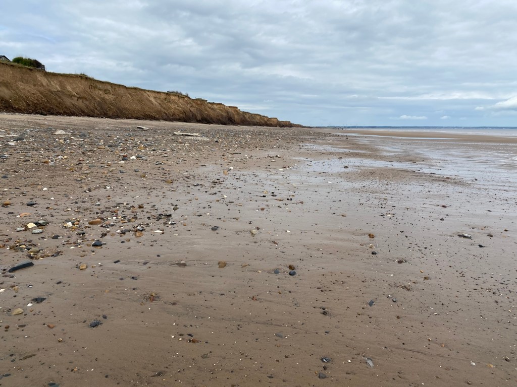 It rained most of the night but stopped around 10.00am. We headed for the beach and turned towards Hornsea. The cliffs are being eroded quite badly and you often see pipes and concrete from caravan parks that have fallen onto the beach.