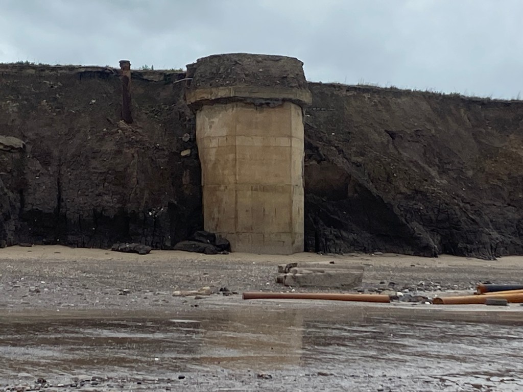 We walked 3 miles and we got to some sort of ww2 defences. The cliff is so eroded that it may have been a gun emplacement with ammunition storage that would have been underground.