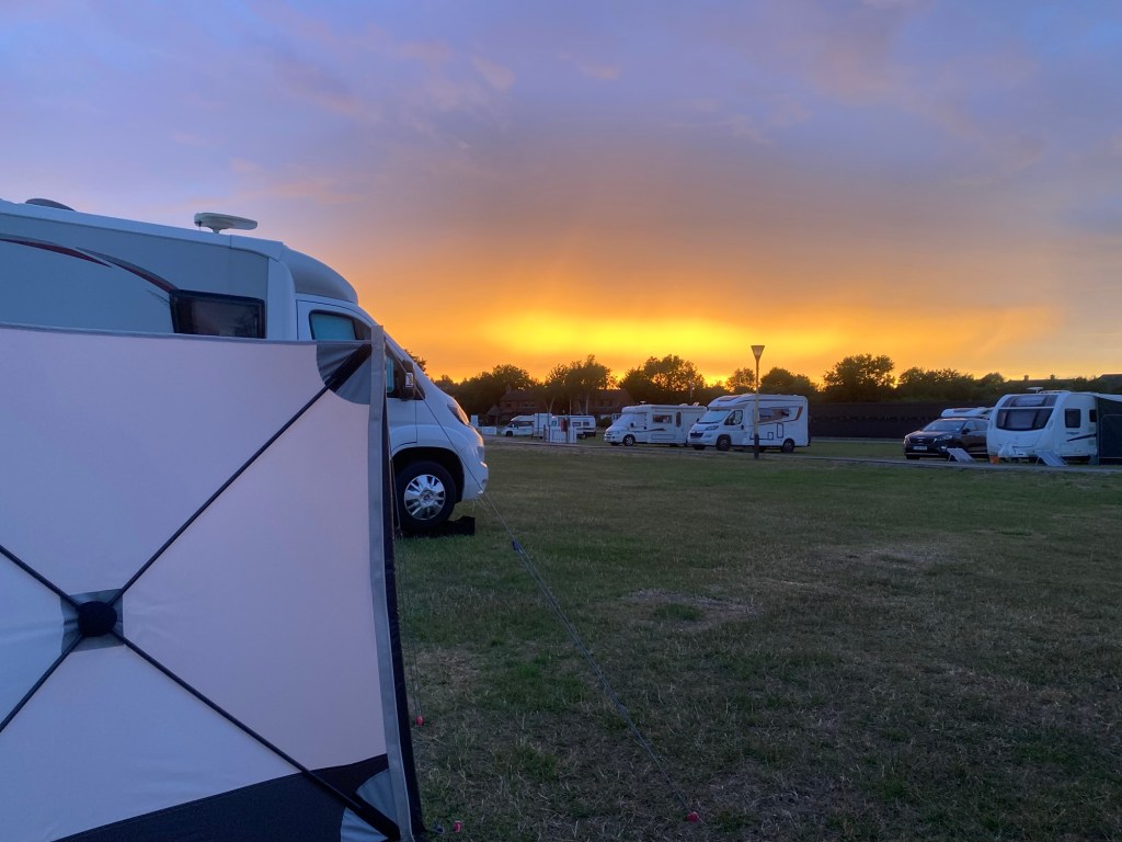 The trip took a couple of hours and we arrived to a very busy campsite. There is so much room that we were offered electric or non electric pitches. We went non electric and we just chose a patch of grass at the end of a row.