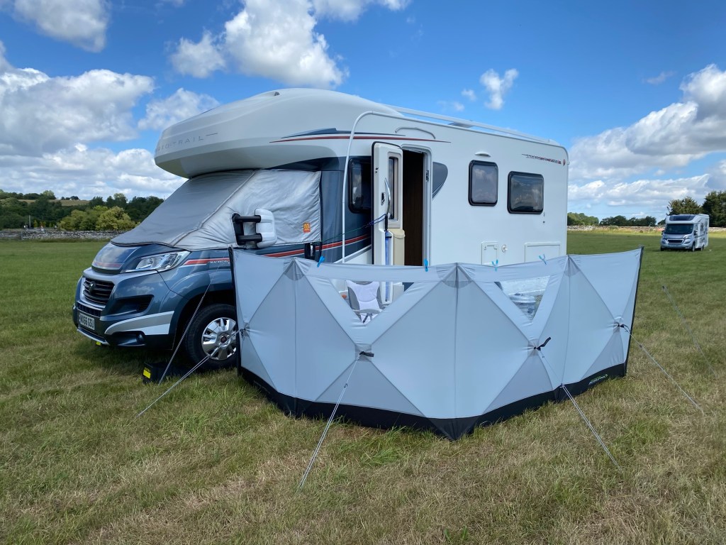 The stewards are great and we got a pitch with a scenic view which was pretty flat. We decided to put up just the windbreak to start with.