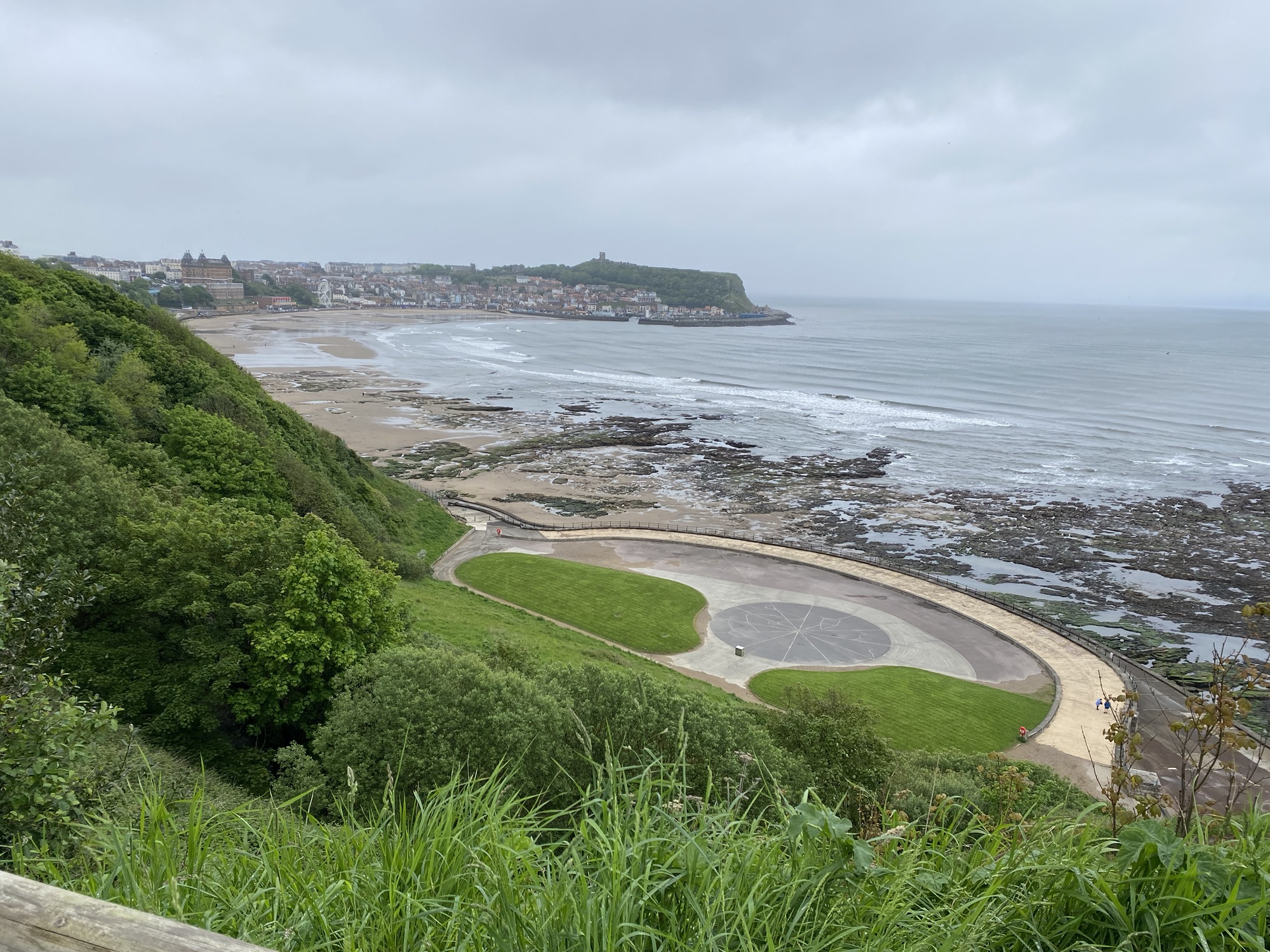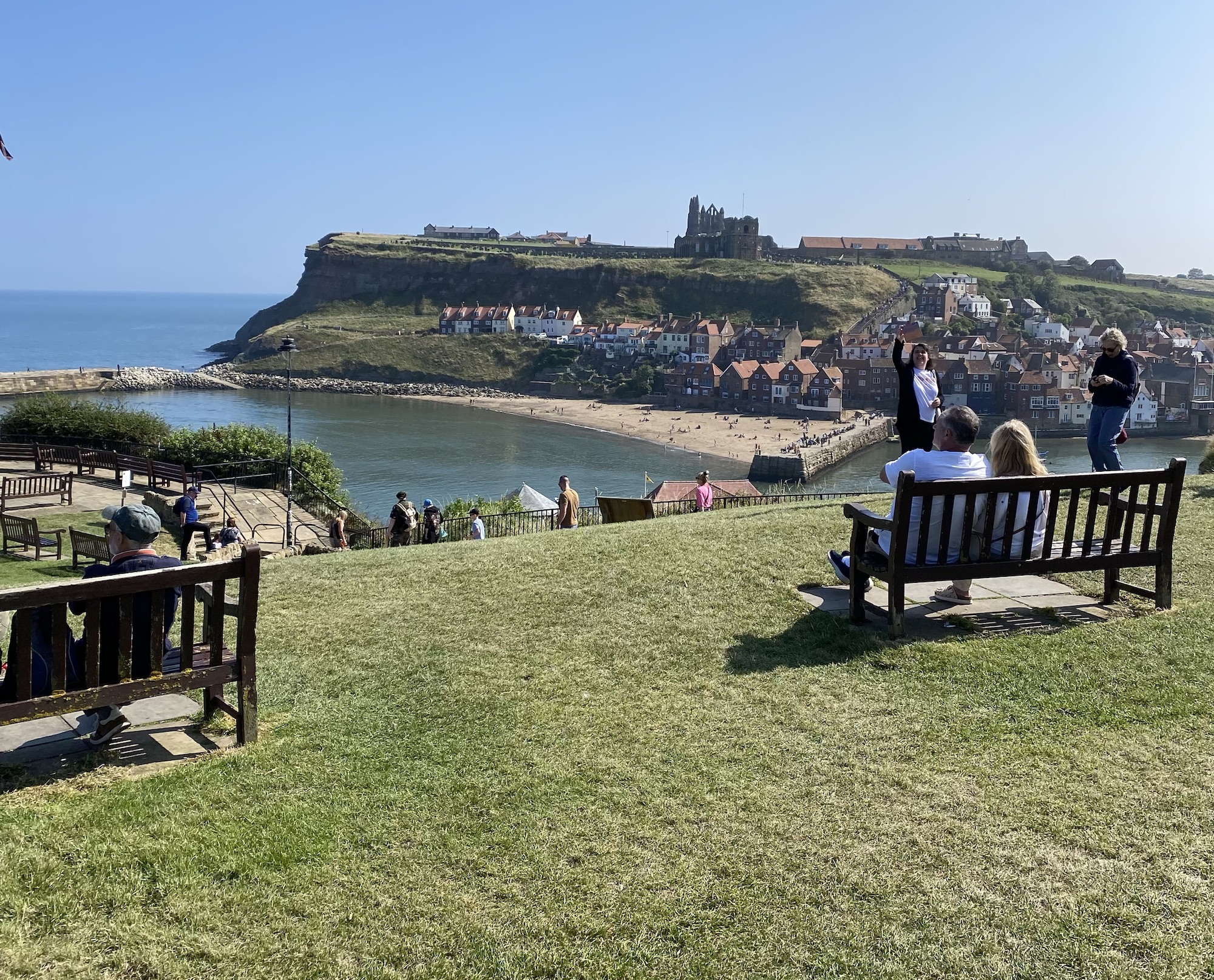 Walking into Whitby along Railway line path , great town, Abbey ruins.